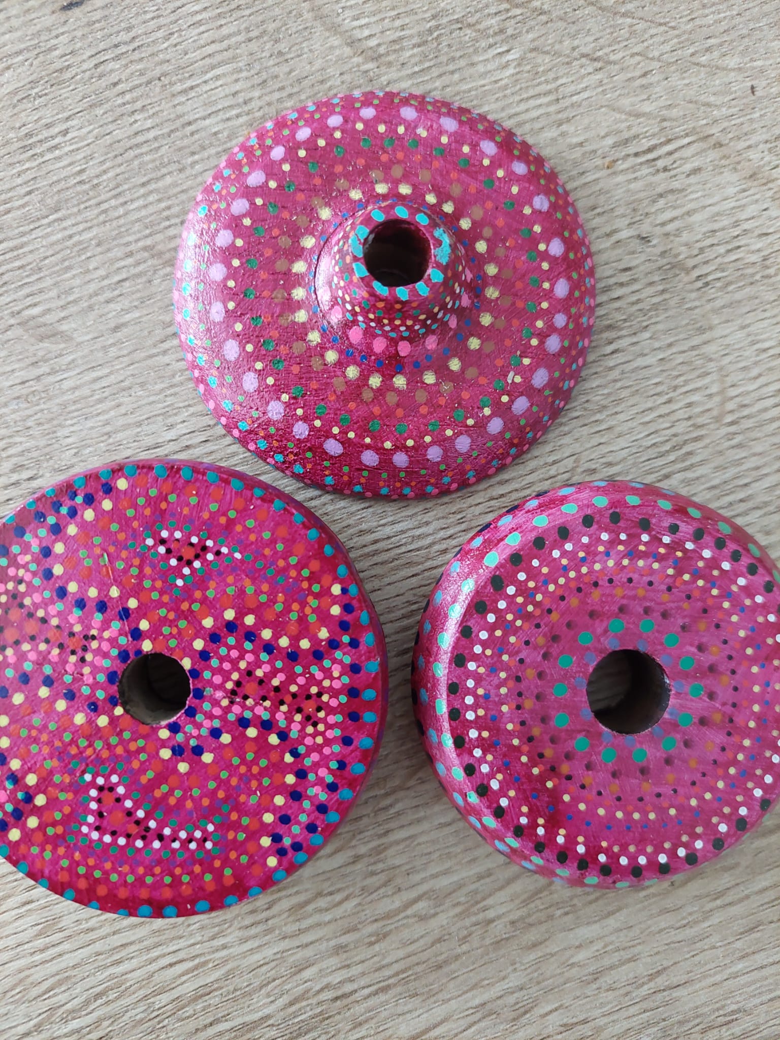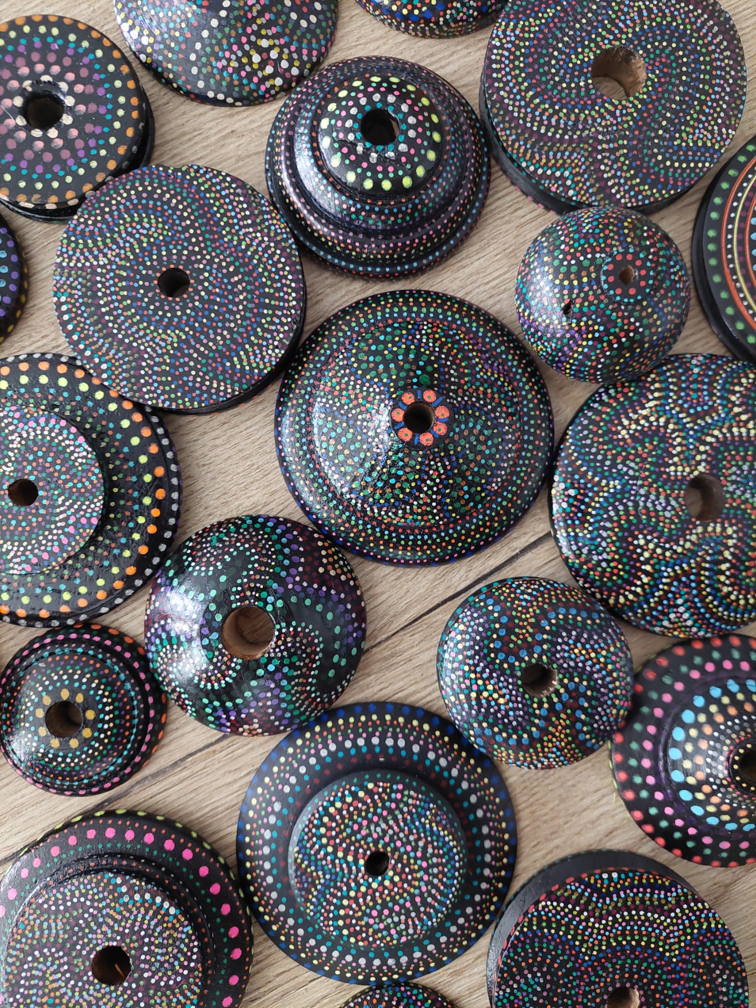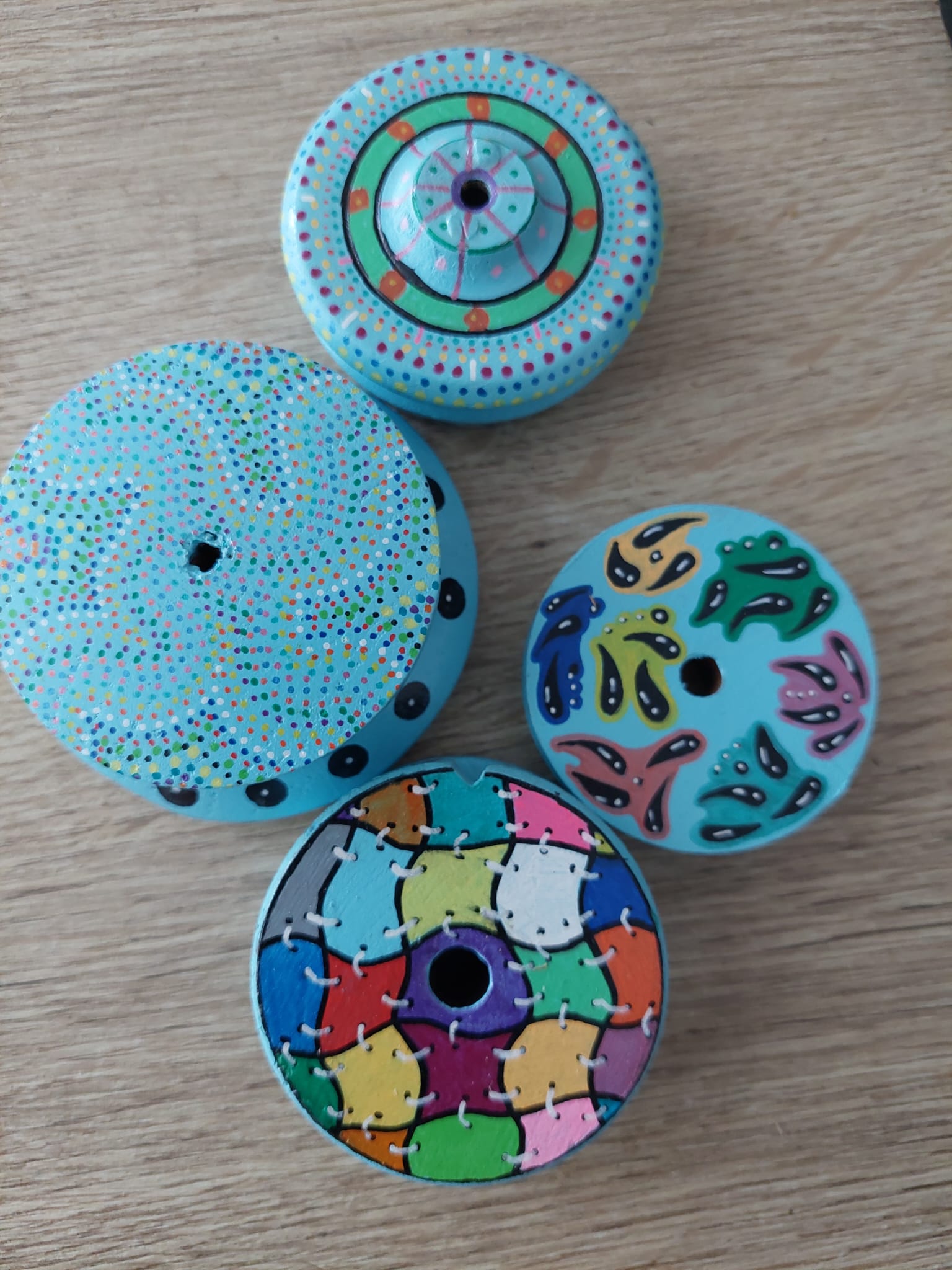- Je schuift de bolletjes spinner als een armband om je pols.