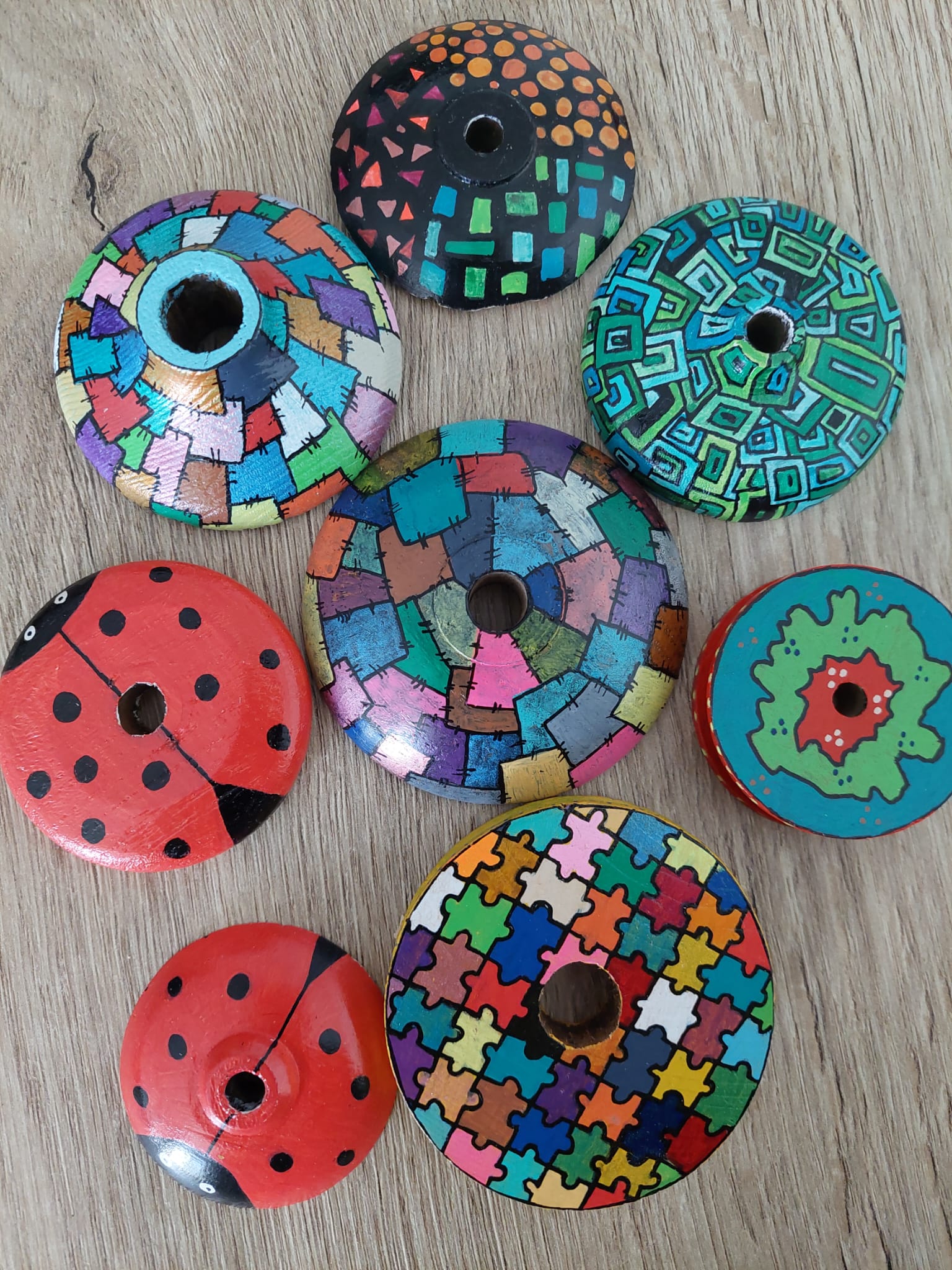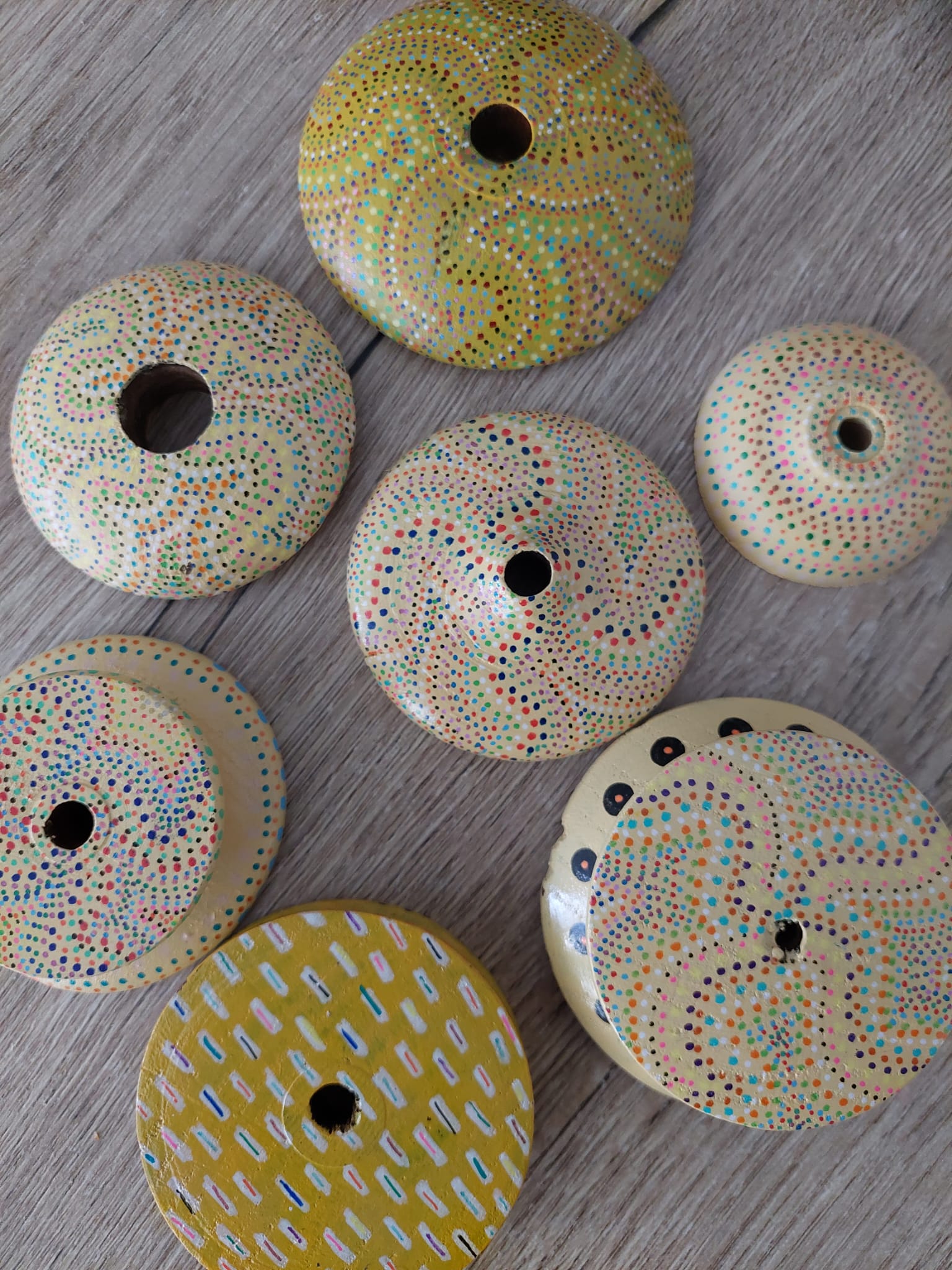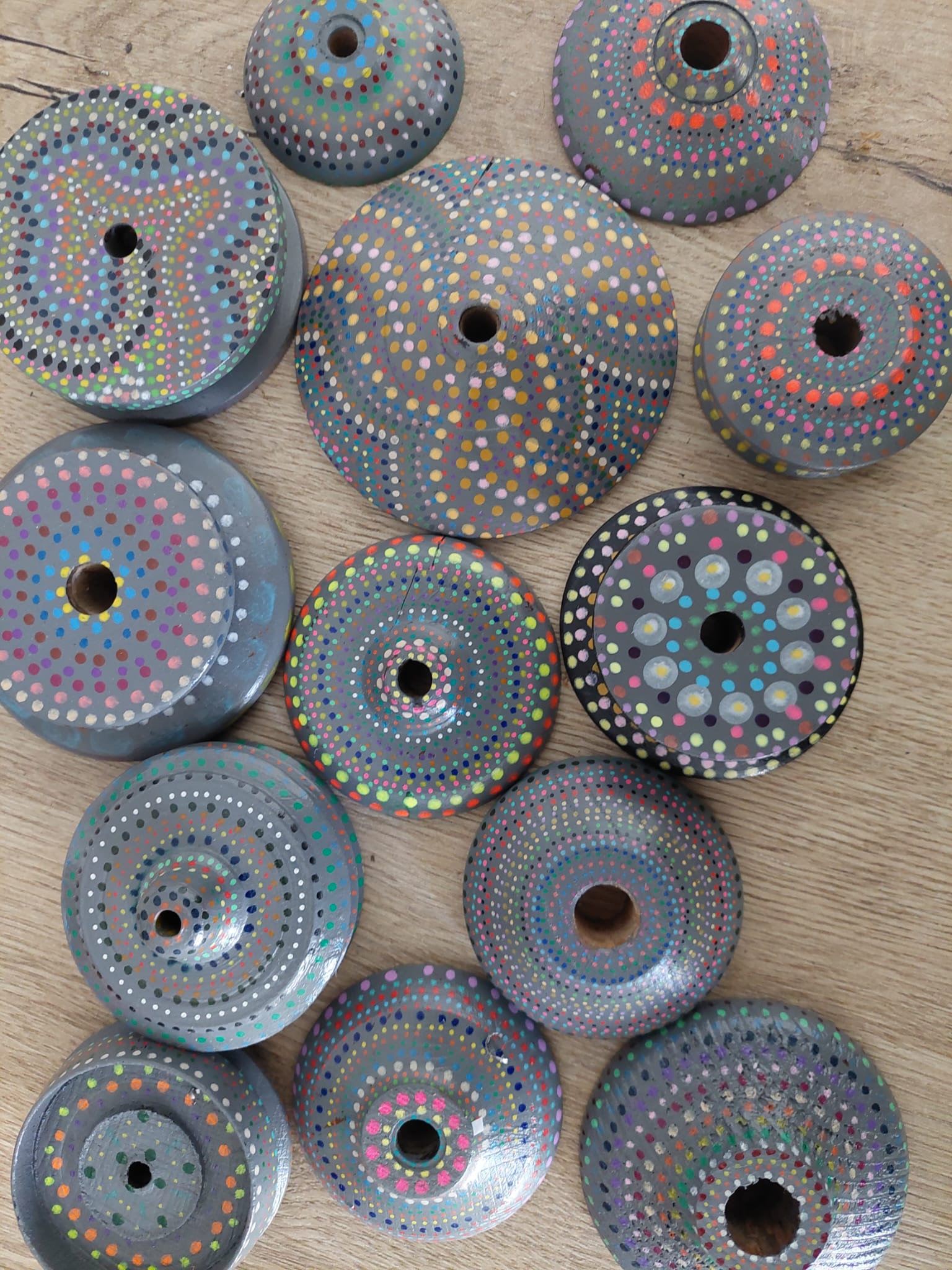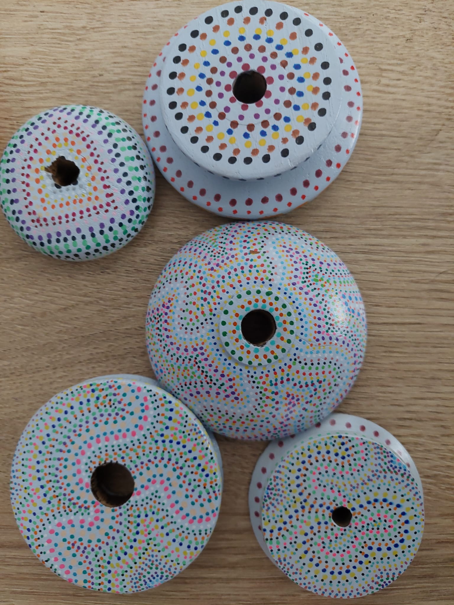 - Je schuift de bolletjes spinner als een armband om je pols.